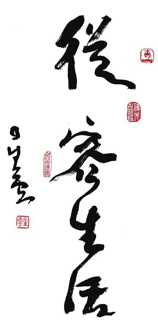 练字,是这位僧人每天必做的功课。他提着笔的右臂愈来愈有分量,用笔蘸水,一挥而就。写字如播种,洒下一个“勤”字,才得刚劲笔锋。练出人生的感悟,练出深入骨髓的不屈性格。